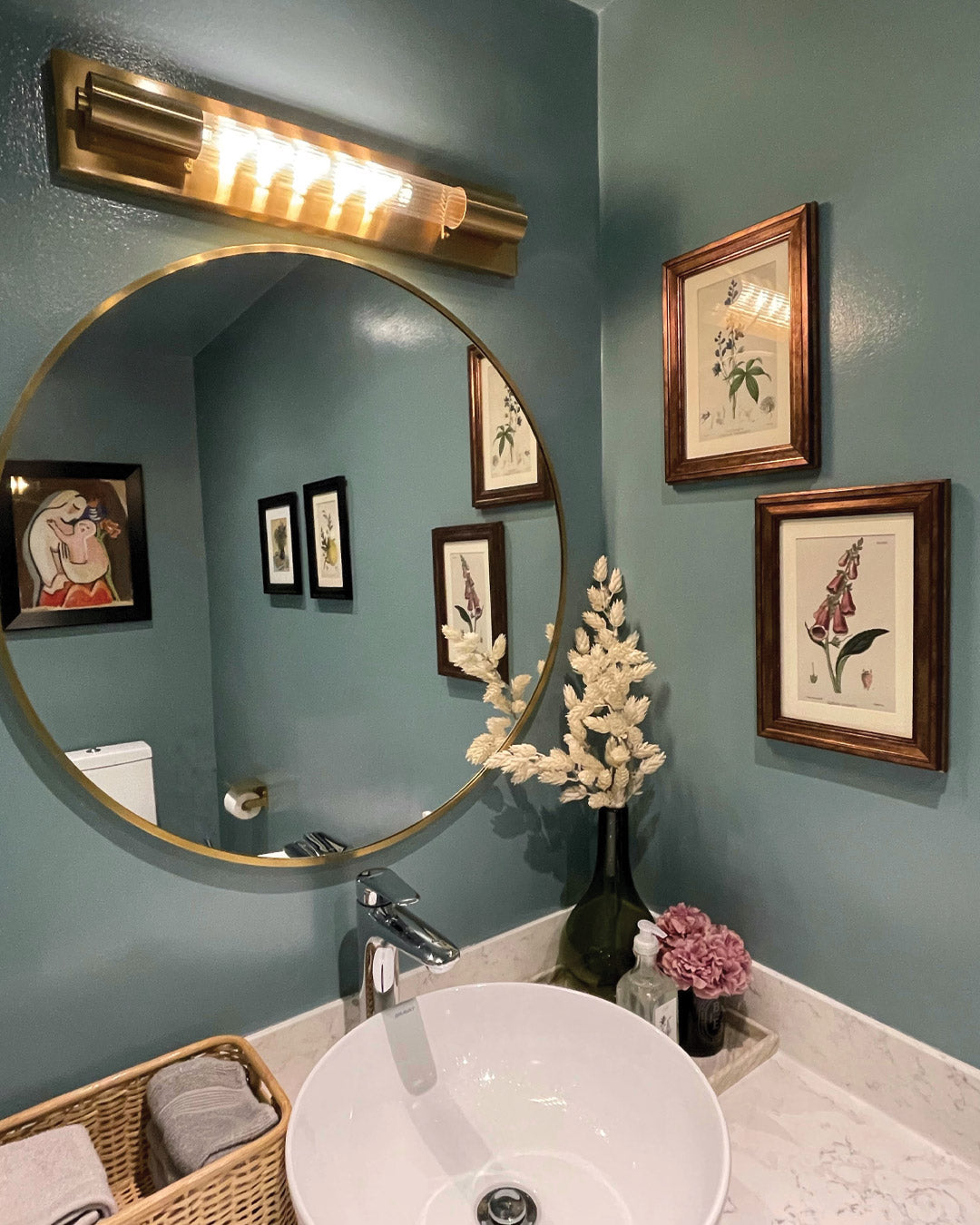 We love everything in these photos: The vintage furniture, the colors, the details, and the wall art set. Everything is balanced, refined and cozy.