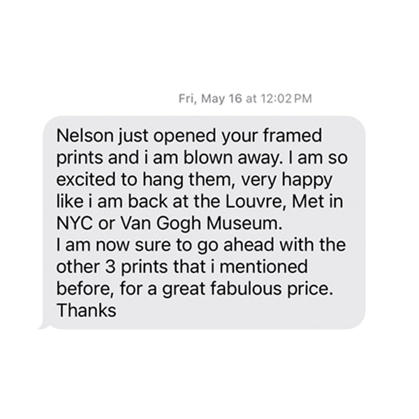 With a love for elegance and a keen eye for details I am truly delighted with my painting. Musee Jolie has managed to seamlessly marry the production of fine art prints at a great price. The color and detail are superb, and the customer service was second to none.