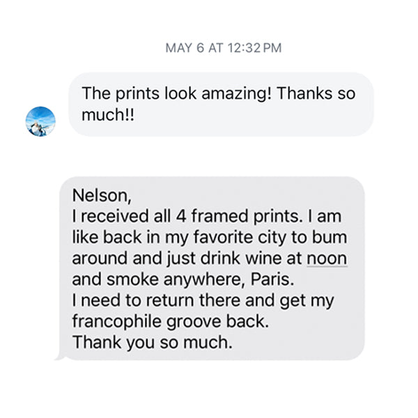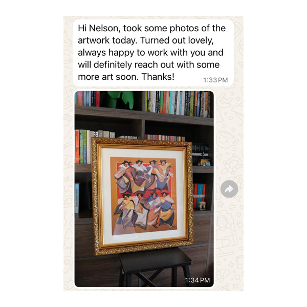 After renovating my restaurant, I called Nelson and Celina to add fine art print on my walls. They helped me with the selection. Today my guest and I love the different prints. It really had a special touch to Society Lounge Makati. Thank you again for your astonishing work.
