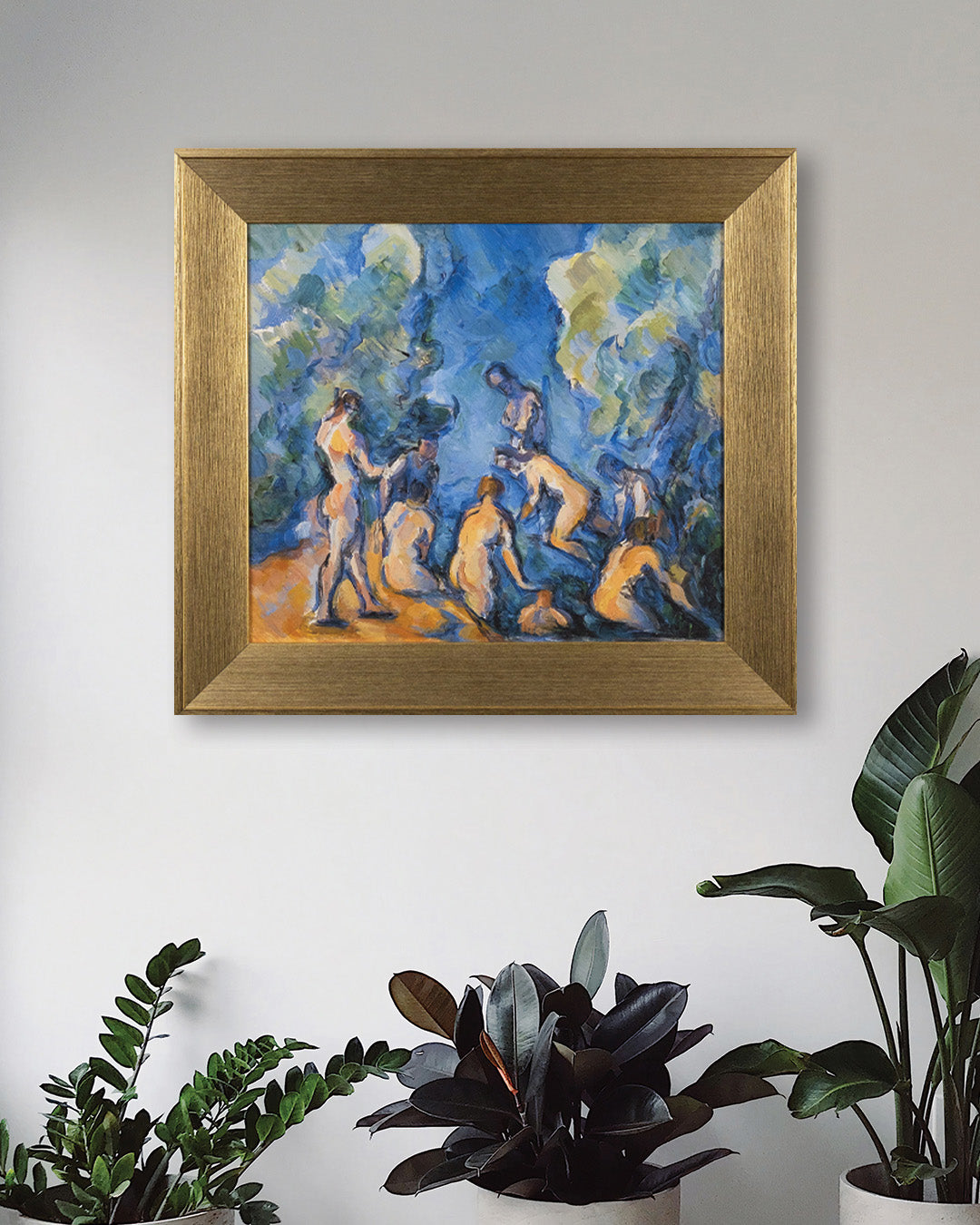 Bathers (Baigneurs) (ca. 1902-1904) captures Cézanne's exploration of the human form in a natural setting, as his deft brushstrokes and thoughtful composition convey a sense of timeless tranquility, inviting us to reflect on the inherent beauty and harmony of the human figure.