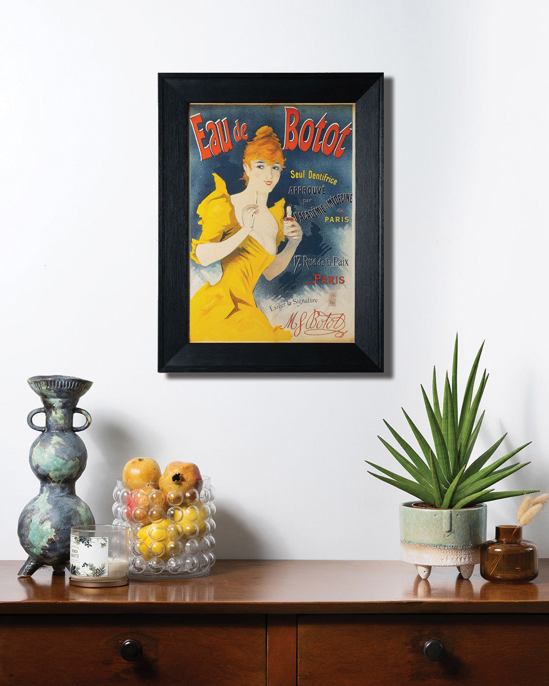"Eau De Botot" (1896) by Jules Chéret is a captivating poster that showcases the allure and benefits of the renowned mouthwash. The artwork's vibrant colors, elegant composition, and charming figures promote the refreshing qualities of Eau De Botot.
