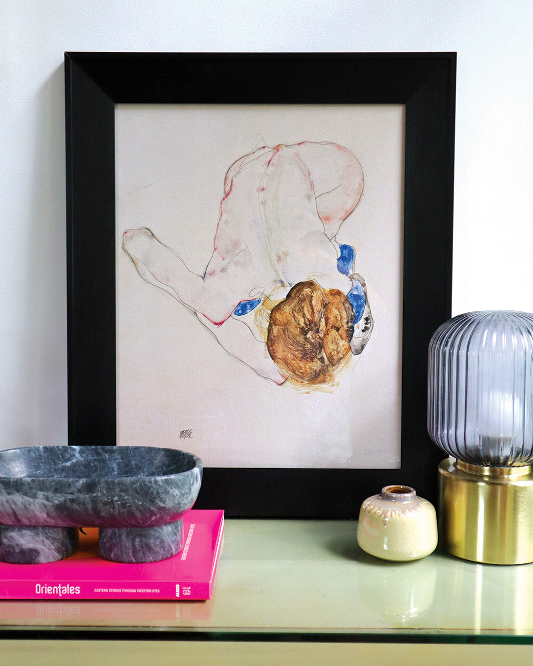 Nude with Blue Stockings, Bending Forward (1912) - Egon Schiele