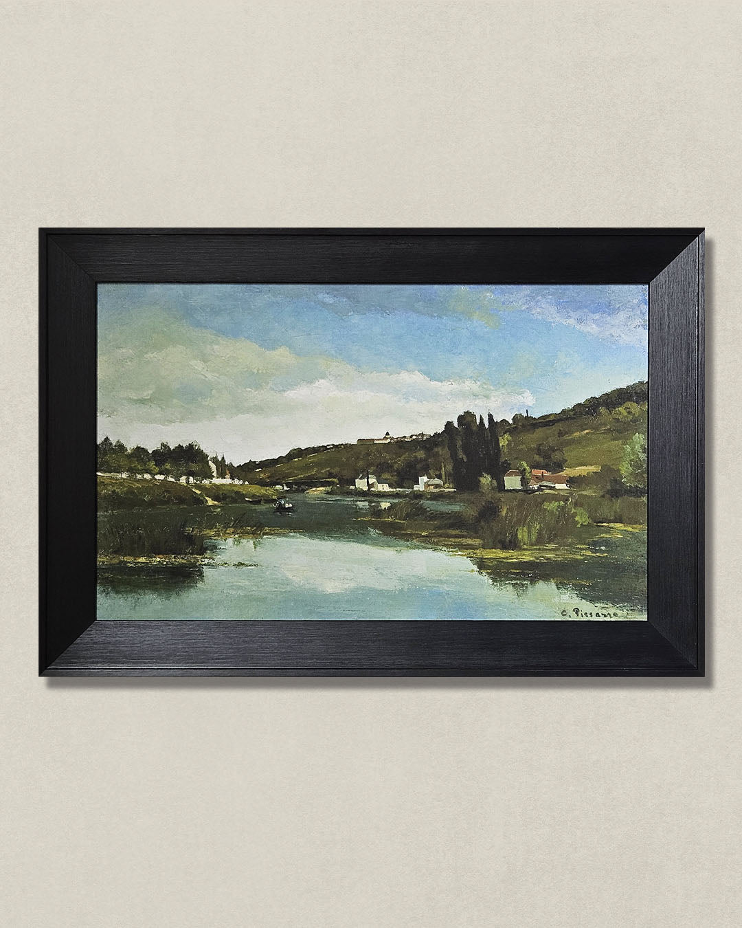 "The Marne at Chennevieres" by Camille Pissarro is a serene and evocative landscape painting that captures the natural beauty and tranquility of the Marne River in the small French village of Chennevieres. Painted by the esteemed Impressionist artist, this work showcases Pissarro's exceptional talent for rendering the play of light, atmosphere, and the fleeting moments of everyday life.