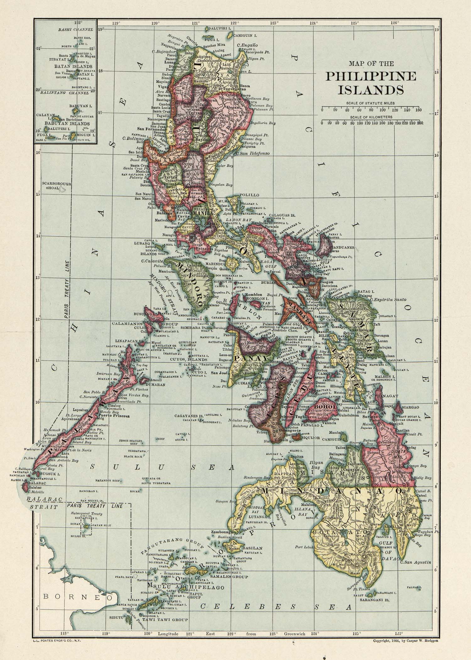 Fine Art vintage Philippine Islands map on cotton canvas.